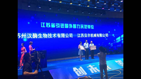 今日,江苏贝尔机械获得了由江苏省外国专家局授予的 江苏省引进国外智力示范单位 称号。"中国的快速发展,及国家对科学研究的重视,使中国逐渐开始成为全世界科学家向往的国度,"国家外国专家局局长张建国说。