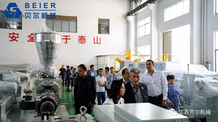 Chinaplas2018虽然已经谢幕,但是热度并没有减退,4月28-30号为江苏贝尔机械工厂开放日。展会期间有进一步合作意愿的客户集中来到工厂进行参观和更深度的洽谈。 整洁的车间、井然有序的生产,高质量的设备展示都给客户留下了深刻的印象。