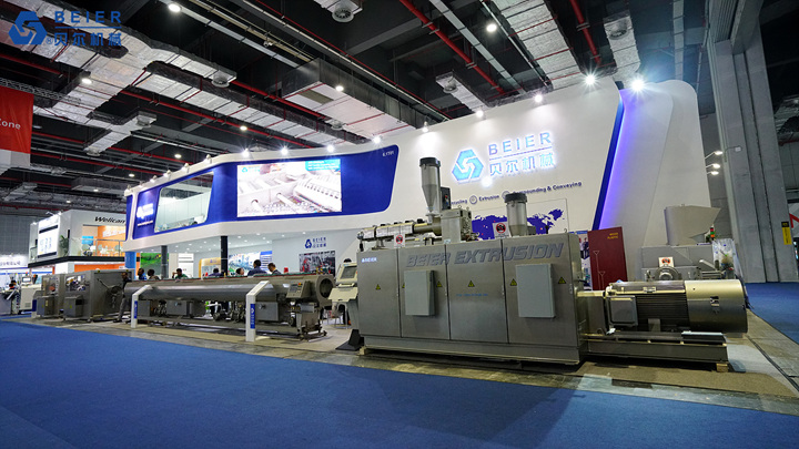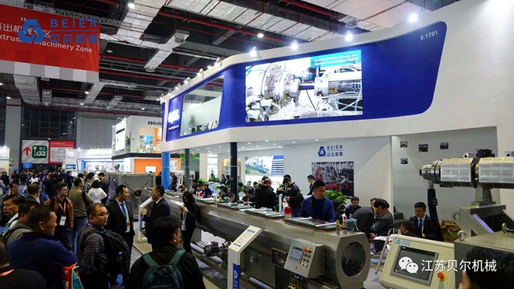 此次参展,江苏贝尔机械依旧是两个展位,贝尔机械在6.1馆T01展位以及星贝尔在8.1馆L67展位, 其中贝尔机械展示了3层共挤智能石油管生产线,目前环保态势下关注度高的PP/PE软料团粒造粒系统,以及配混设备部件。而星贝尔展示了全自动智能吹瓶系统,并且现场实际开机操作。