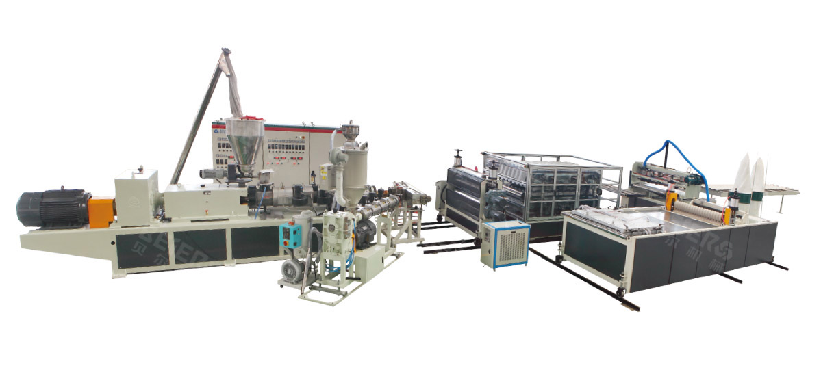 PVC层由SJZ80/156锥形双螺杆挤出机生产,ASA或者PMMA层由SJ50单螺杆共挤机挤出。