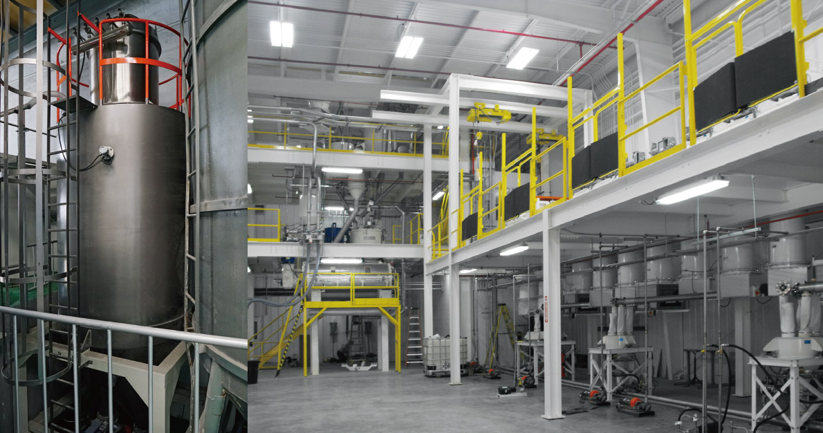 - 颗粒除湿干燥集中处理,原料输送为密闭式。