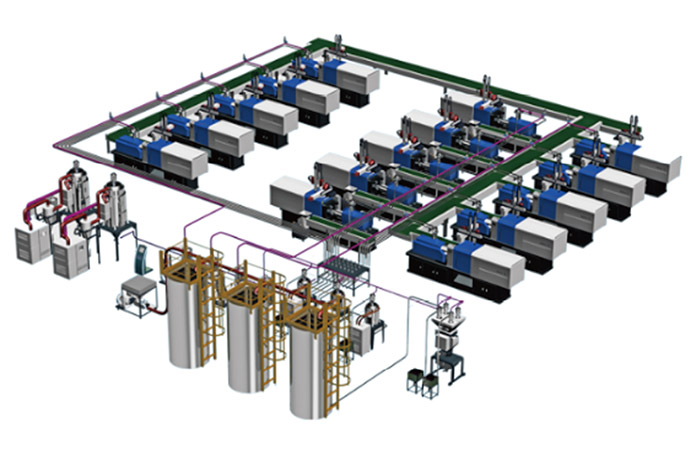 - 塑料集中供料系统可实现多种不同原料输送,将处理原料按设定好种类合理分配,快速切换原料。